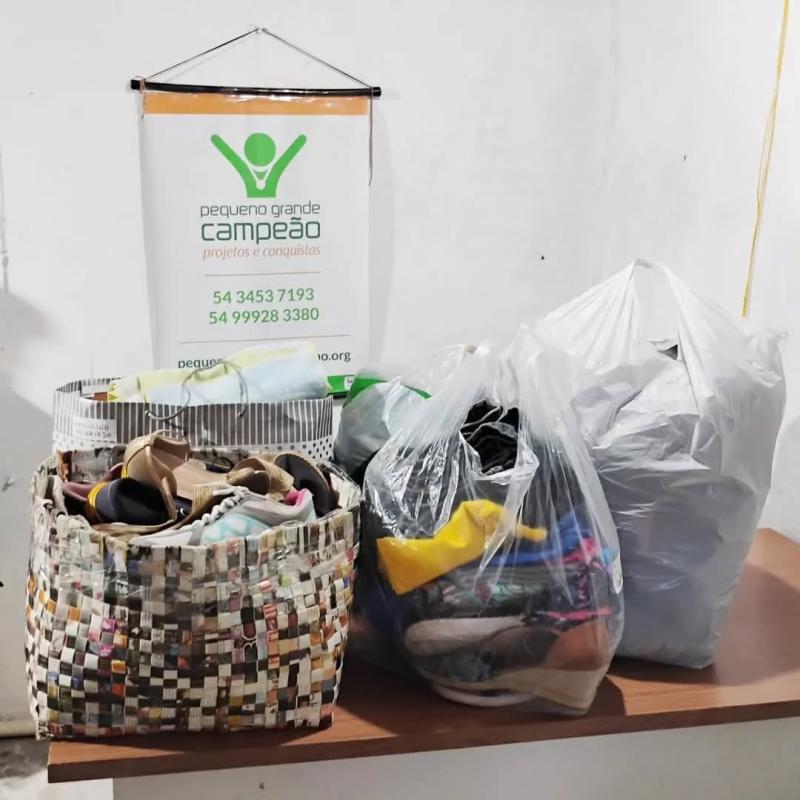 Domingo de Solidariedade! Recebidas doações de Jorge (de Bento Gonçalves) e da Roseli (de Garibaldi) para o Brechó da Pequeno Grande Campeão.
