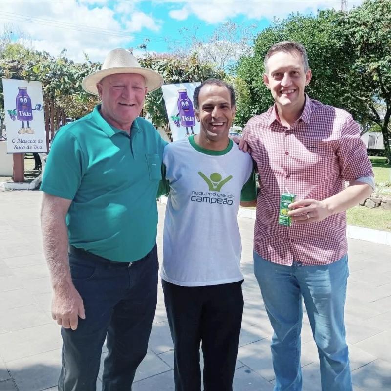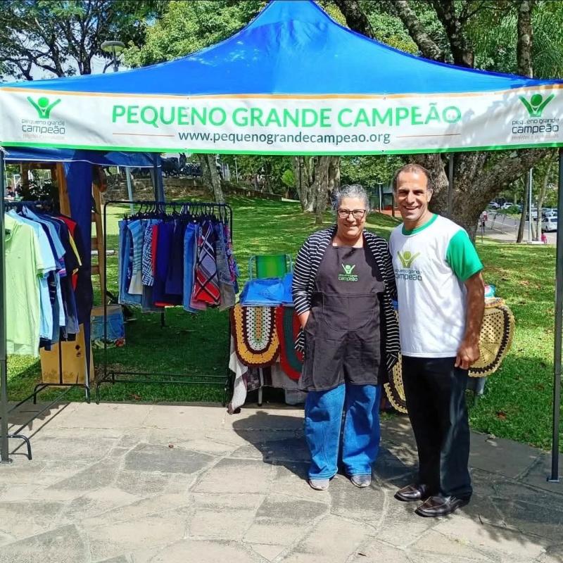 Domingo na Praça! Hoje foi o dia de Festival! Sim, Festival do Suco de Uva em Bento Gonçalves. Pequeno Grande Campeão esteve presente com o espaço de Artesanato e Brechó, com os voluntários Jéferson e Maria.