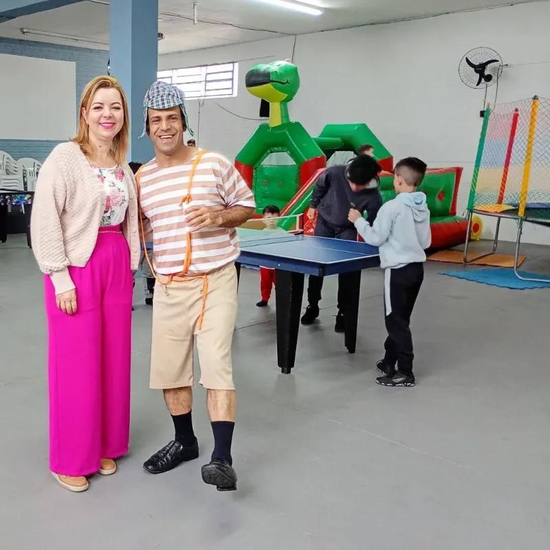 Parceria! Pequeno Grande Campeão participou na Tarde de Domingo (26/11) da Festa da Garotada na Assembleia de Deus Monte Sião em Bento. Evento contou com a animação do Chaves, além da presença de Voluntários e membros da Diretoria da ONG.
