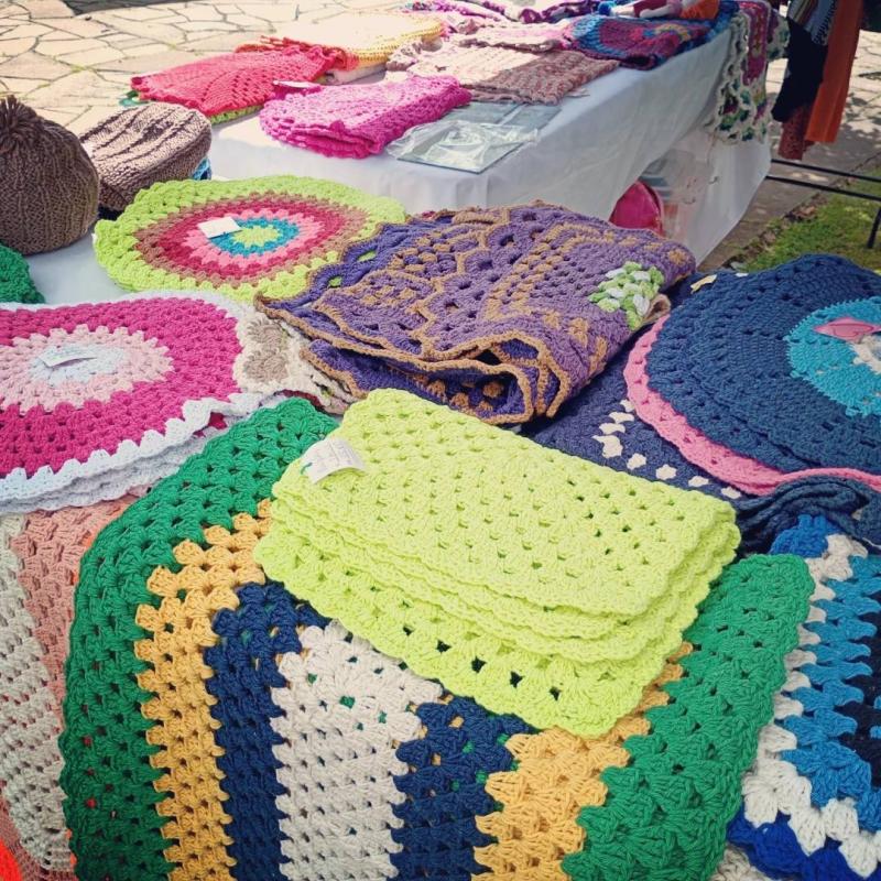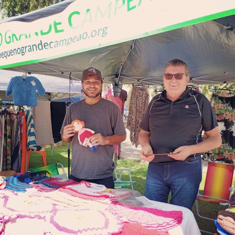 Espaço de Artesanato e Brechó da Pequeno Grande Campeão presente na edição da Criar Feiras na Praça Achylles Mincarone, na tarde de ontem (08/03).