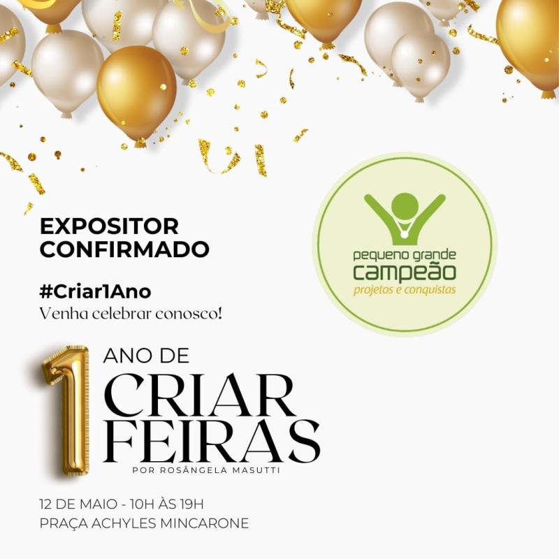 Vem Aí, uma Linda Feira! Criar Feiras de 1 ano na Praça Achyles Mincarone! Participe! Dia 12 de Maio, das 10hs às 19hs!