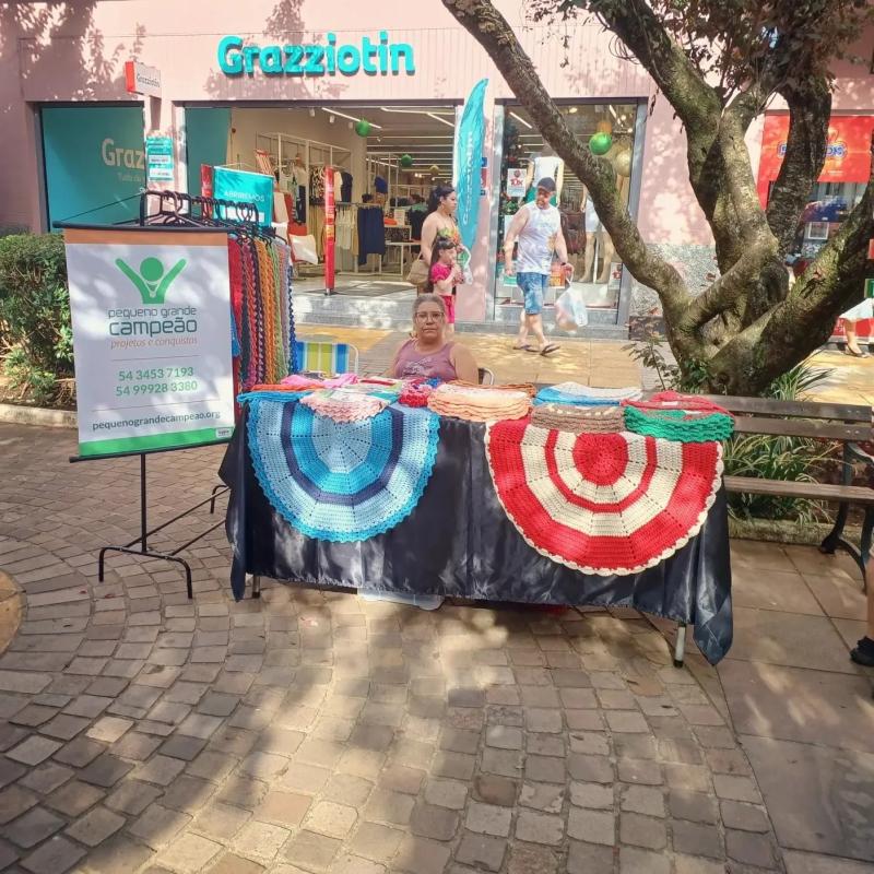 Pequeno Grande Campeão participa em 2ª edição do Mercatino Di Natale (16/12) em Bento. Evento foi das 9hs às 18hs, na Praça Via Del Vino (mesmo quase parecendo impossível, por conta do mau tempo pela manhã). Participação teve exposição e venda de artesanato, com os Voluntários Jeferson e Maria.
