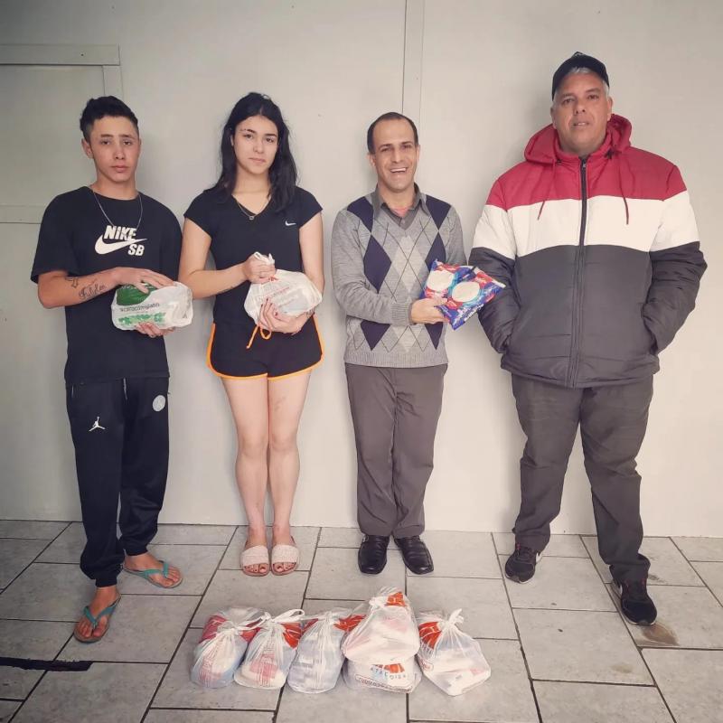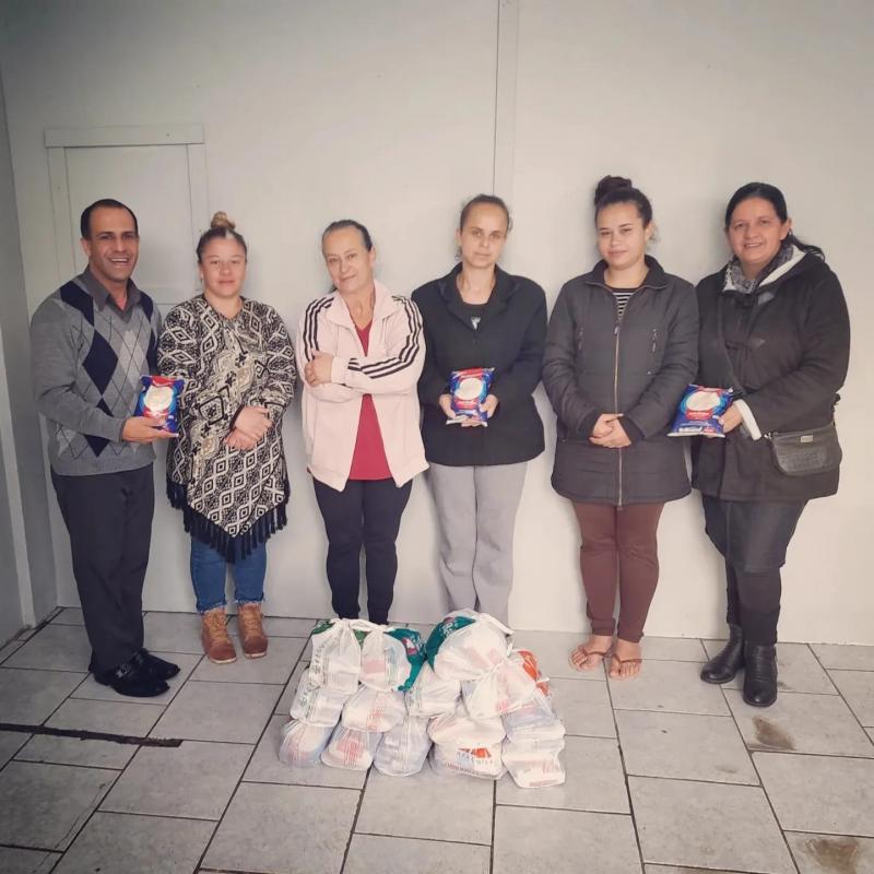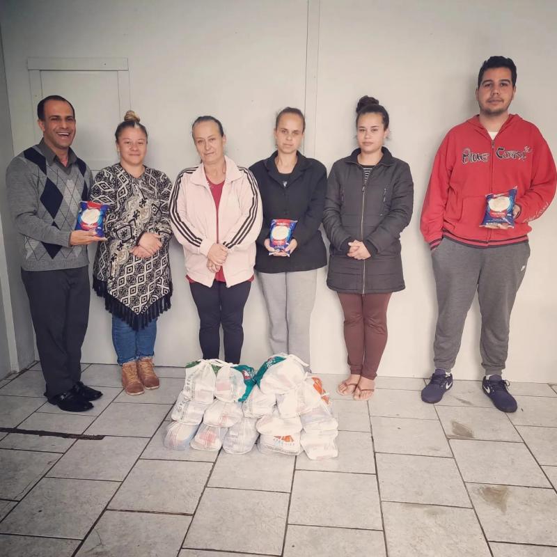 Famílias do Vila Nova II, recebem doações de Alimentos (Arroz) da Pequeno Grande Campeão.