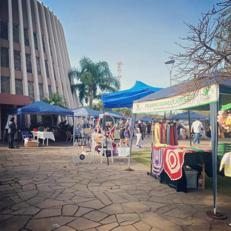 Ontem (9) ocorreu a Criar Feiras e Espeto Solidário na Praça Achyles Mincarone (da Igreja Redonda), com a participação do Pequeno Grande Campeão com seu espaço do artesanato.