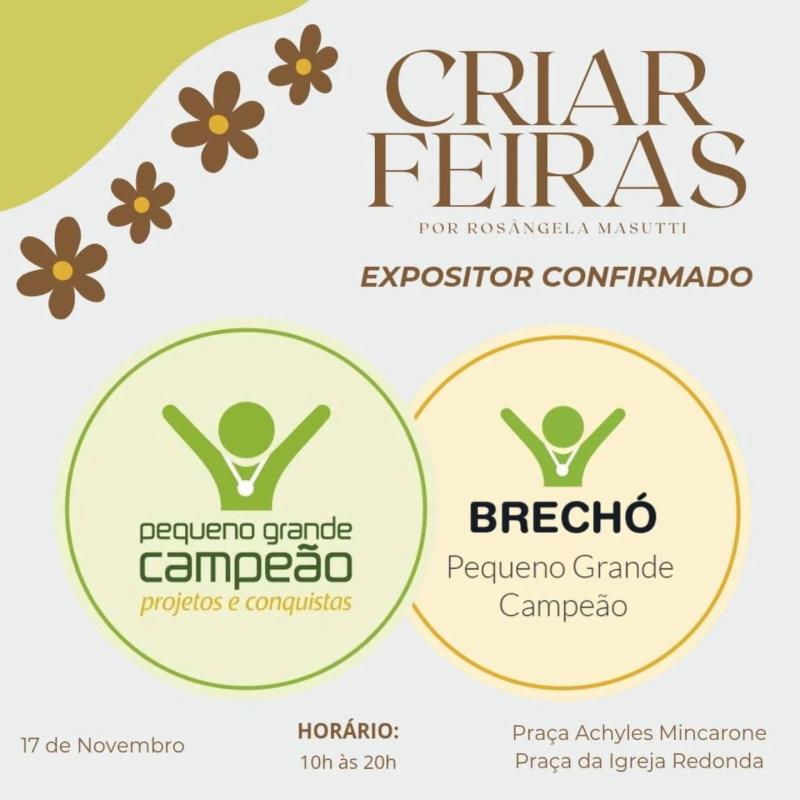 Pequeno Grande Campeão com o Espaço do Artesanato e Brechó estarão presentes na Criar Feiras. Acompanhe e Vem com a Gente!