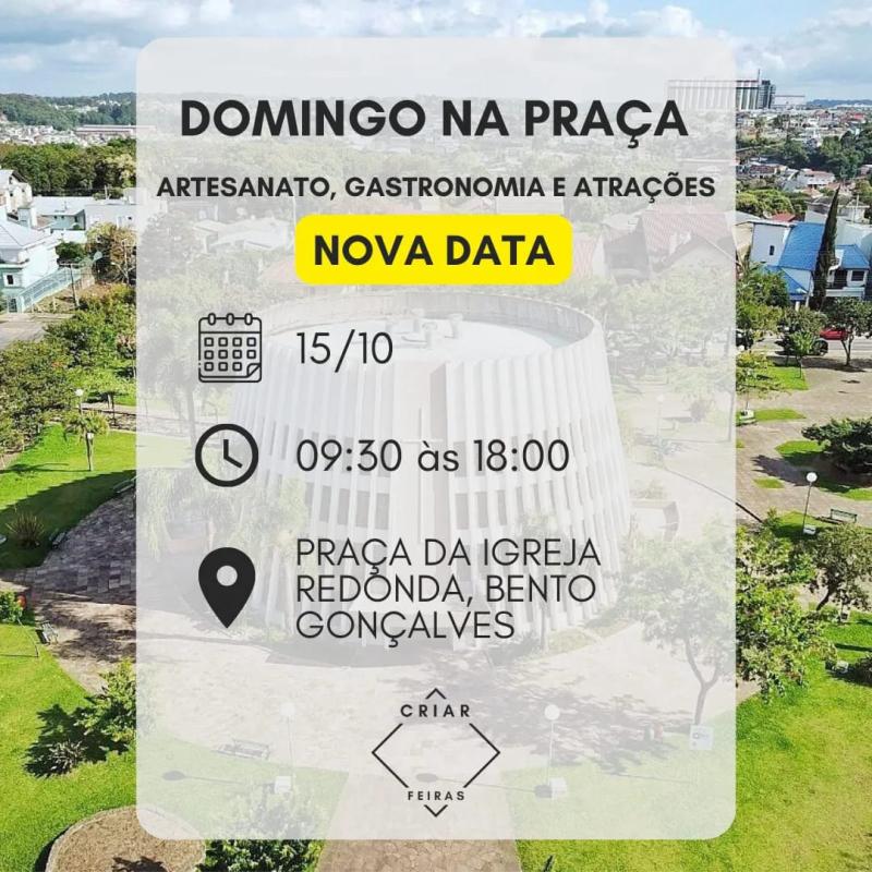 Domingo também é Dia de Feira! A Criar Feiras ocorre na Praça Achyles Mincarone (da Igreja Redonda), das 9hs 30 às 18hs.