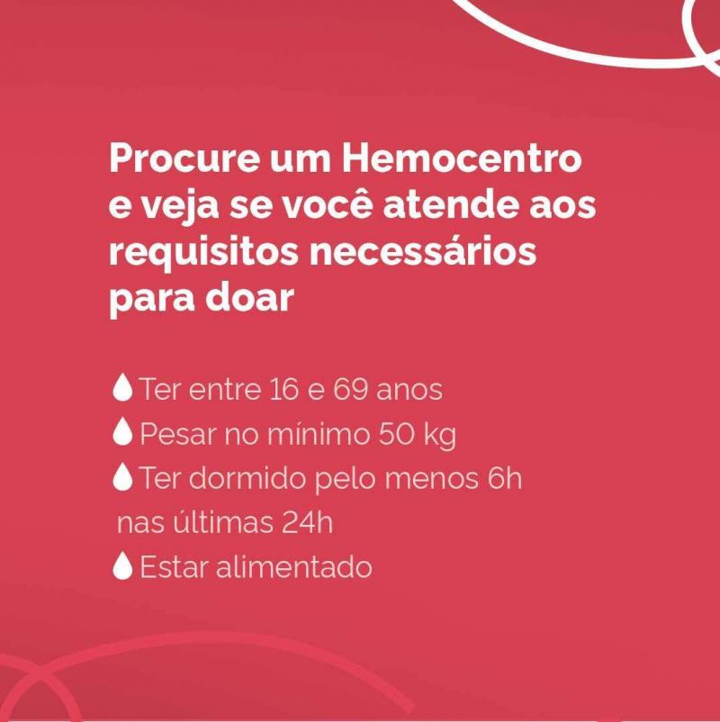 Critérios básicos para doação: Ter idade entre 16 e 69 anos, desde que a primeira doação tenha sido feita até 60 anos (menores de 18 anos devem possuir consentimento formal do responsável legal); Pessoas com idade entre 60 e 69 anos só poderão doar sangue se já o tiverem feito antes dos 60 anos. Apresentar documento de identificação com foto emitido por órgão oficial (Carteira de Identidade, Carteira Nacional de Habilitação, Carteira de Trabalho, Passaporte, Registro Nacional de Estrangeiro, Certificado de Reservista e Carteira Profissional emitida por classe), serão aceitos documentos digitais com foto. Pesar no mínimo 50 kg. Ter dormido pelo menos 6 horas nas últimas 24 horas. Estar alimentado. Evitar alimentos gordurosos nas 3 horas que antecedem a doação de sangue. Caso seja após o almoço, aguardar 2 horas.