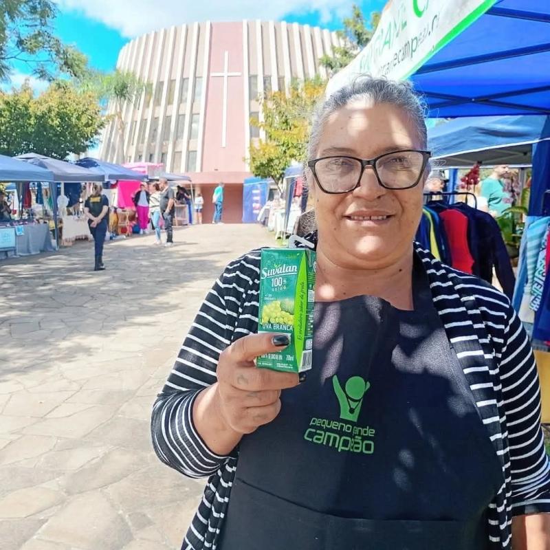 Domingo na Praça! Hoje foi o dia de Festival! Sim, Festival do Suco de Uva em Bento Gonçalves. Pequeno Grande Campeão esteve presente com o espaço de Artesanato e Brechó, com os voluntários Jéferson e Maria.
