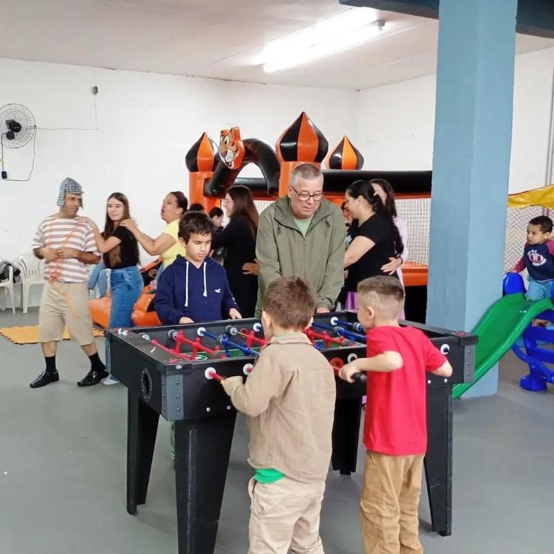 Parceria! Pequeno Grande Campeão participou na Tarde de Domingo (26/11) da Festa da Garotada na Assembleia de Deus Monte Sião em Bento. Evento contou com a animação do Chaves, além da presença de Voluntários e membros da Diretoria da ONG.