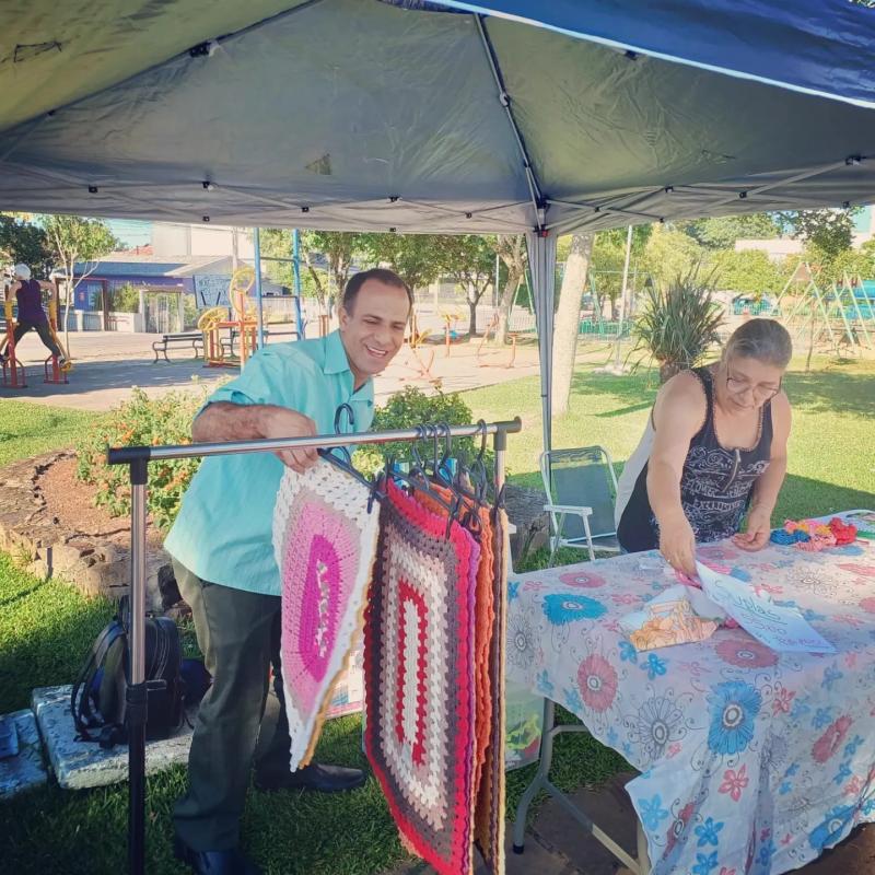 Hoje (14/01) foi Dia de Criar Feiras na Praça. Nós da Pequeno Grande Campeão através dos Voluntários Jeferson e Maria, apresentamos os materiais de Artesanatos. Feira aconteceu, das 10hs às 18hs, na Praça Achyles Mincarone (a da Igreja Redonda).