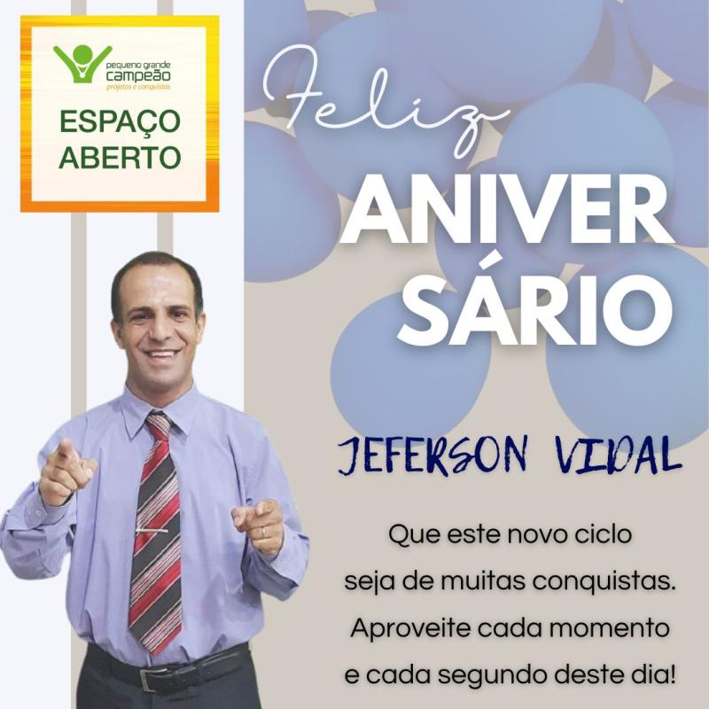 Parabéns! Sim, Parabéns e muitas Felicidades! Sr. Jéferson comemore e Viva muitos anos! Voluntário! Amigo! Sonhador! Especial, Pequeno Grande Campeão! Felicidades pelo seu Dia!