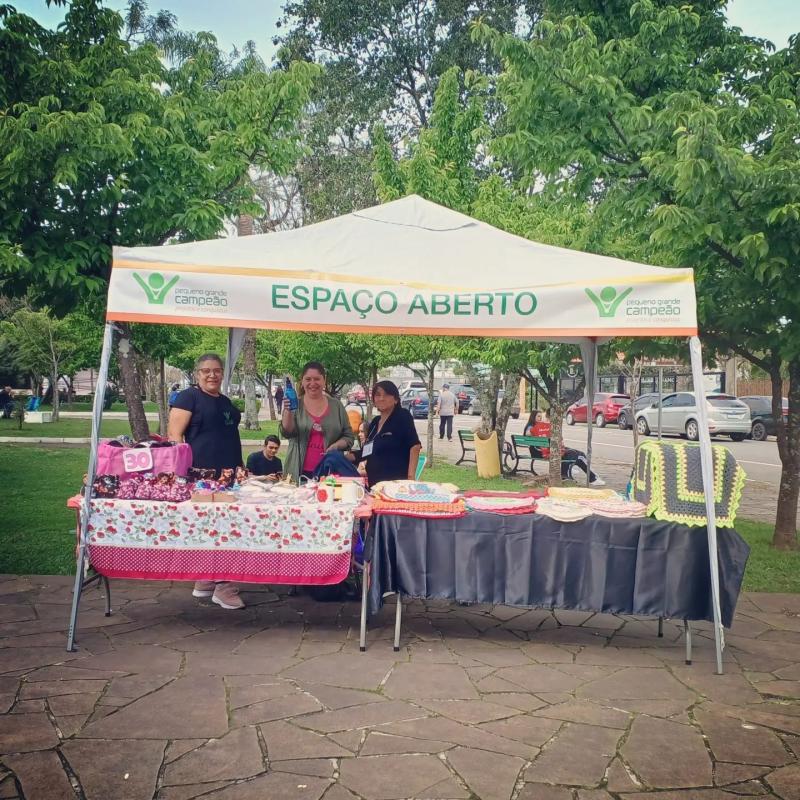 Pequeno Grande Campeão participa da Criar Feiras (10/09), das 9hs 30 às 18hs, pela primeira vez, na Praça Achyles Mincarone (a Praça da Igreja Redonda!).. Lideranças da Pequeno Grande Campeão, Sras. Angela, Genice e o Sr. Jéferson estiveram representando a ONG, ao lado da Sra. Rosângela Coordenadora da Criar Feiras. Foi exposto material artesanal das Voluntárias Roseli e Aline em Espaço Aberto, quais também prestigiaram a Feira. O Espaço Aberto, foi Coordenado pela Voluntária Maria, que se manteve no local a feira toda. A Tarde, o Chavinho da Pequeno Grande Campeão participou animando a Garotada e os adultos presentes na Festividade! Foi Sensacional!