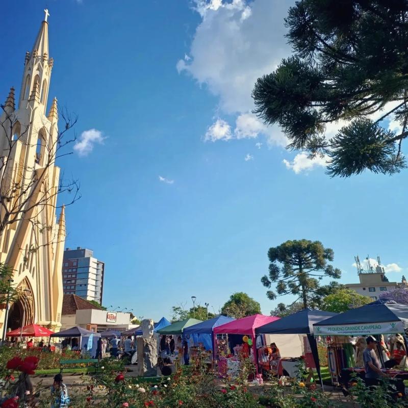 Domingo de Feira, hoje (26/11) teve a 2ª Edição da Feira Arte na Praça, que aconteceu na Praça das Rosas, da Igreja Cristo Rei. Voluntários Jeferson e Maria, realizaram o atendimento no local, vendendo peças artesanais (tapetes, panos de pratos e outros) da costureira voluntária Roseli. Feira começou às 10hs e foi até 20hs.
