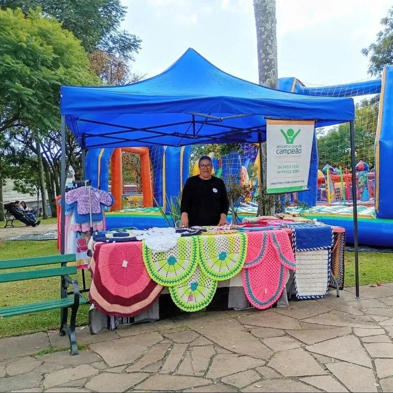 Pequeno Grande Campeão participa de edição comemorativa dos 2 anos da Criar Feiras, junto com a organizadora da feira Sra. Rosângela Masutti, na Praça Achylles Mincarone (Praça da Igreja Redonda).