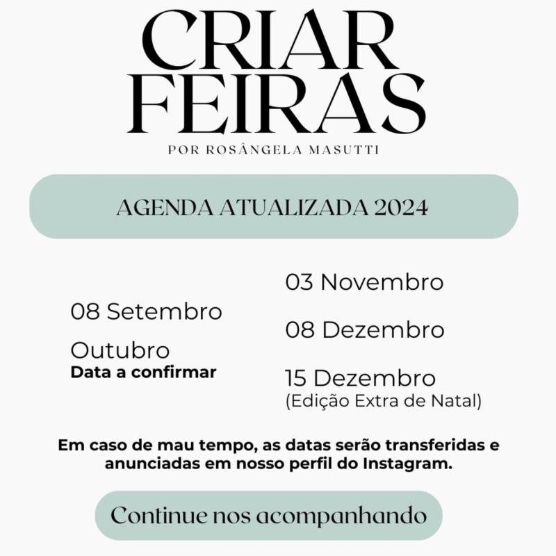 Pequeno Grande Campeão segue participando das edições da Criar Feiras com o Espaço do Artesanato. Confira as datas do evento que ocorre na Praça Achyles Mincarone (da Igreja Redonda).