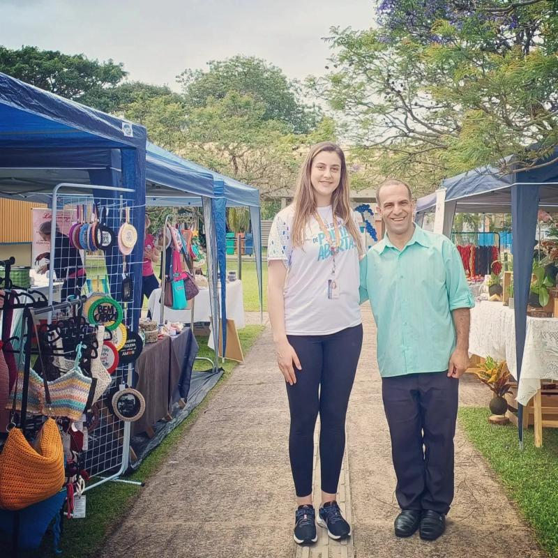 Pequeno Grande Campeão com os voluntários Jéferson e Maria, participaram da Criar Feiras no Sest Senat de Portas Abertas, das 9hs às 12hs.