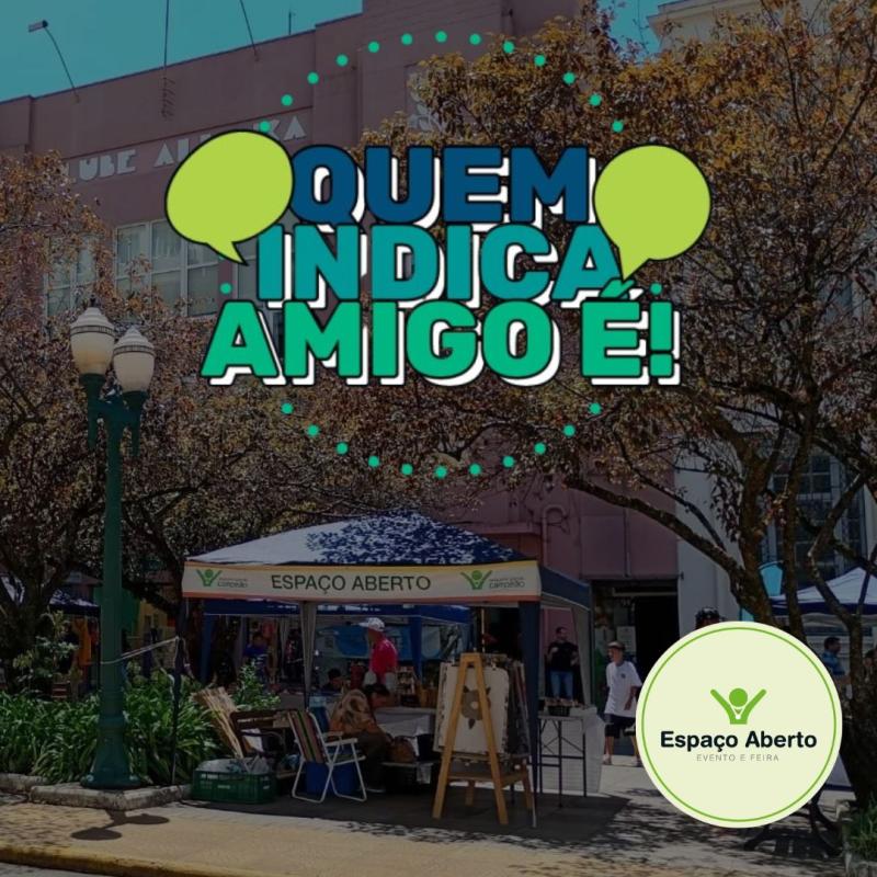 Olá Pessoal! A Pequeno Grande Campeão através das feiras vem apresentar o Programa Quem Indica Amigo é!, que visa em aceitar INDICAÇÕES de NOVOS EXPOSITORES para o BRIQUE DA PRAÇA e a ESPAÇO ABERTO. A ideia é que haja interação da parte dos participantes daS feiraS para com outros não participantes, que ao entrar em contato conosco e efetivando seu cadastro (ativa-lo), o que indicou ganha um bônus de R$ 5. O bônus será aplicado no desconto de taxa de inscrição do expositor que indicou o novo Expositor. Participe, Chame os Amigos para participar da Feira! Vem com a Gente!