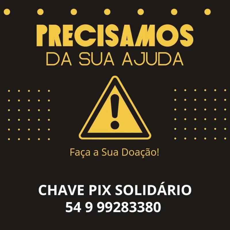 A Corrente do Bem faz a diferença, vem com a Gente! Precisamos de Sua Ajuda! Compartilhe e Doe! Chave Pix da ONG, número de CNPJ 10318577000108 e/ ou Celular 54999283380, em nome de Instituição Pequeno Grande Campeão.