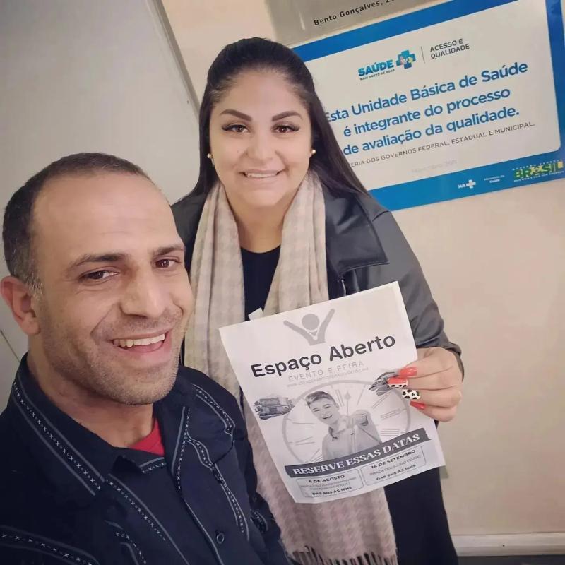 Coordenador da Espaço Aberto Feira e Eventos no bairro Aparecida distribuindo e fixando cartazes para divulgar as edições da Feira na 1ª Praça do Batalhão Ferroviário (Paróquia São Roque) e Praça Céu (Ouro Verde).