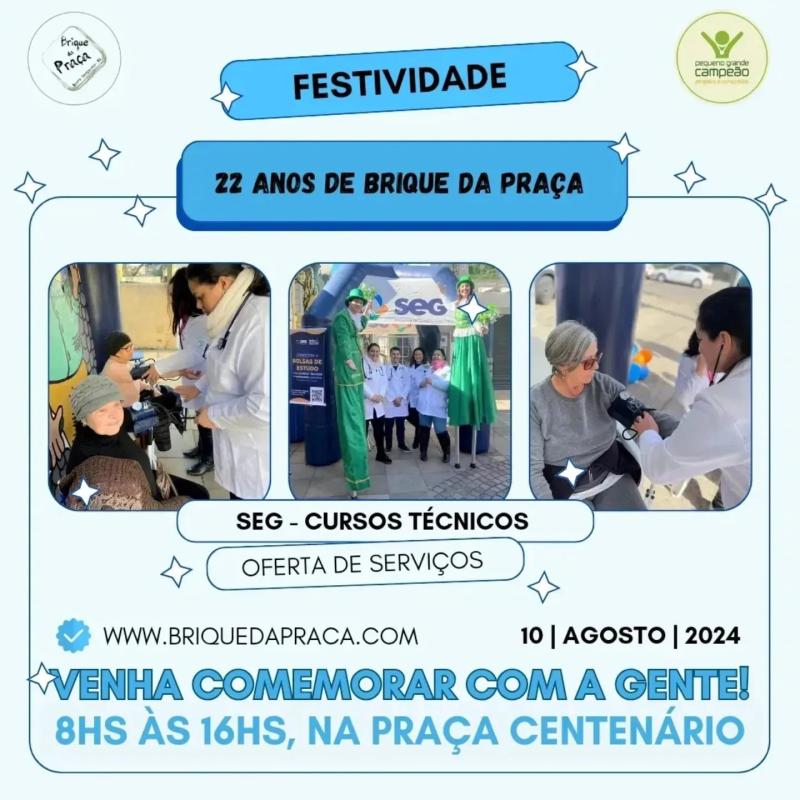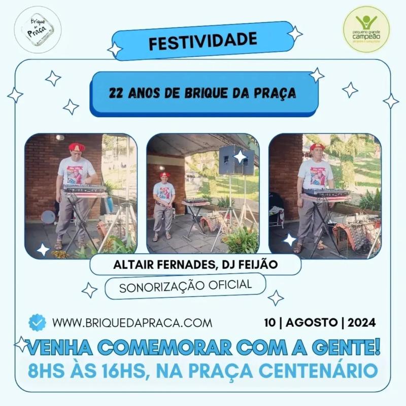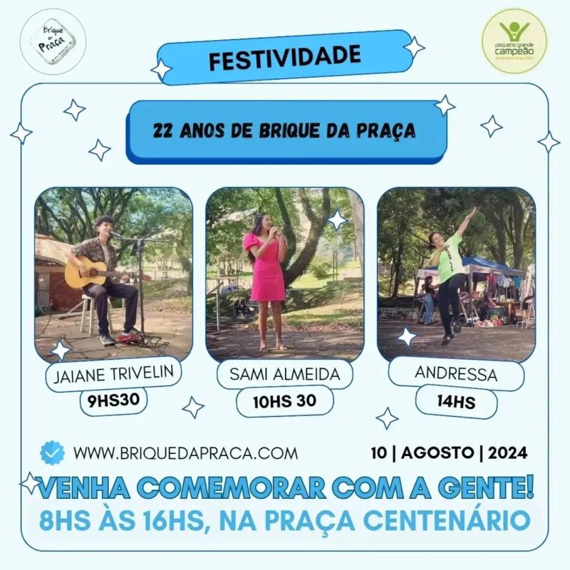 Mais um Ano! Mais um Ciclo! Mais um Tempo de Grandes Conquistas! E tudo, isto... merece ser Comemorado! E a Comemoração não podia faltar Você Visitante, Cliente, Parceiro, Amigo e Expositor! Será no Sábado, dia 10 de agosto, na Praça Centenário, das 9hs às 12hs, durante a edição do Brique da Praça!
